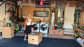 STEP UPS - If you have any pubic symphysis pain or SPD focus on keeping your pelvis neutral and your hips level. You could always do smaller or shorter step/less range of motion. You can also try stepping laterally onto a stack of plates or something instead of stepping forward and up, sometimes this helps create some control in managing the position of the pelvis. You may need to change the movement to squats or something that keeps you legs in the same plane. Option to sub: Single Leg Glute Bridge, Hip Thrusts, Air Squat, Goblet/DB Squat