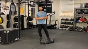 We like the reverse lunge because the working leg stays planted so you end up being able to drive through the heel really well. You will step back and keep the heel down. Don't allow the knee to cave in. GENTLY touch the ground with the leg (knee) you stepped back with. Then drive off of the front foot (heel) to bring you back to standing. Switch legs for the next rep.